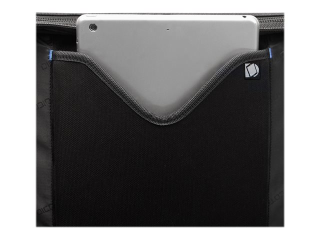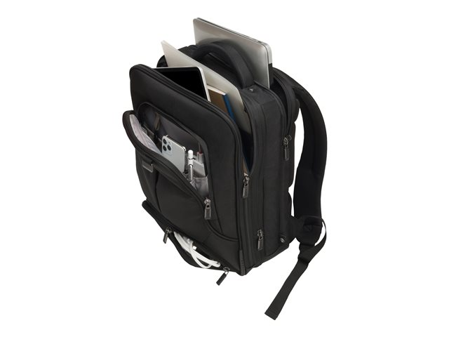 Avec l'Eco Backpack PRO, vous êtes un voyageur de " première classe ". Le sac à dos vous accompagne partout et correspond aux exigences élevées en termes de qualité, fonctionnalité et de protection. L'amour du détail de DICOTA fait de ce sac votre partenaire le plus fiable. La séparation du système fit-all dans le compartiment ordinateur recouvre votre ordinateur, le protège et s'adapte automatiquement aux tailles 12-14,1". La mousse légère en EVA perforée placée dans le compartiment verrouillable de l'ordinateur, protège parfaitement les angles de votre appareil. La tenue optimale pour votre ordinateur portable dans le compartiment est garantie par le revêtement antiglisse. Protection idéale pour votre tablette de taille 12,9"dans le compartiment formé en EVA avec doublure extra douce en Nylex. Espace de rangement généreux pour une imprimante, un projecteur et des documents dans le compartiment extensible. La poche frontale avec porte-clés et compartiments de rangement organise vos ustensiles personnels et offre de la place pour d'autres accessoires mobiles. Le rembourrage ergonomique du dossier, les sangles réglables en longueur, la poignée confortable et la lanière de fixation garantissent un confort de port optimal. La poche zippée cachée convient pour le passeport, le portefeuille, etc. Le fond de la sacoche est en matière étanche. Cela fait de l'Eco Backpack PRO le sac à dos parfait pour tous ceux qui se déplacent souvent et qui souhaitent soutenir la réutilisation raisonnable des bouteilles en PET grâce à une solution de transport écologique.