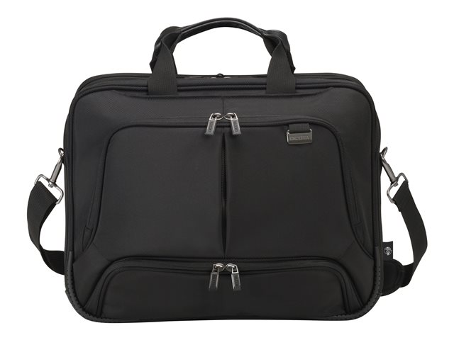 Avec l'Eco Top Traveller PRO, vous êtes un voyageur de " première classe ". La sacoche toploader vous accompagne partout et correspond aux exigences élevées en termes de qualité, de fonctionnalité et de protection. L'amour du détail de DICOTA fait de ce sac votre partenaire fiable! La séparation du système fit-all dans le compartiment ordinateur recouvre votre ordinateur, le protège et s'adapte automatiquement aux tailles 15-17,3". La mousse légère en EVA perforée placée dans le compartiment verrouillable de l'ordinateur, protège parfaitement les angles de votre appareil. Le revêtement de technologie antiglisse garantit une tenue optimale de votre ordinateur portable dans le compartiment et de la sangle rembourrée réglable en longueur. Protection idéale pour votre tablette de taille 12,9"dans le compartiment formé en EVA avec doublure extra douce en Nylex. Espace de rangement spacieux pour des documents. La poche frontale avec porte-clés et compartiments de rangement organise vos ustensiles personnels et offre de la place pour d'autres accessoires mobiles. Le compartiment à fermeture éclair convient pour papiers d'identité. Il y a un compartiment supplémentaire pour le bloc d'alimentation et le câble. Cette sacoche est légère et agréable à porter, grâce à ses poignées en cuir véritable de haute qualité. La lanière de fixation peut servir de compartiment supplémentaire pour des documents. Le fond du sac est en matière étanche. Cela fait de l'Eco Top Traveller PRO le sac parfait pour tous ceux qui se déplacent souvent et qui souhaitent soutenir la réutilisation raisonnable des bouteilles en PET grâce à une solution de transport écologique.