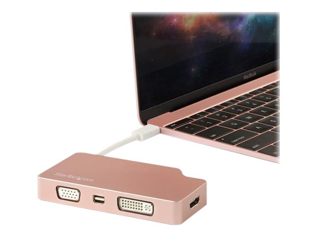 Multiprise USB-C or rose - 4-en-1 USB-C vers VGA, DVI, HDMI, ou Mini DisplayPort - Adaptateur vidéo externe - USB-C - DVI, HDMI, Mini DisplayPort, VGA - rose gold