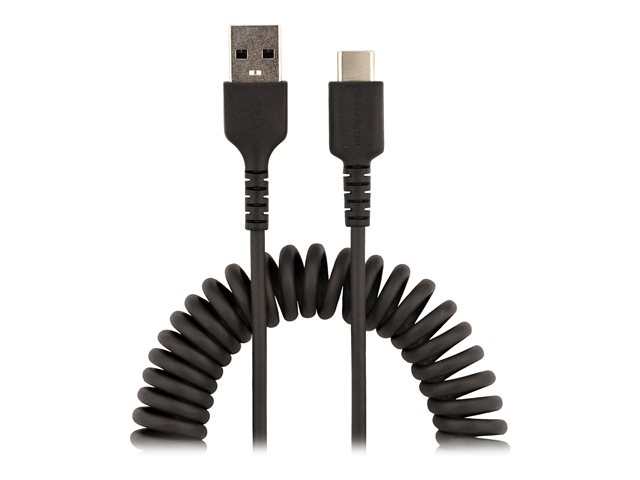 Adaptateur USB-C vers USB-C Enroulé à Usage Intesif - Câble TB3 en Fibre Aramide Robuste - Cordon USB-C à USB-C M/M - Noir (R2CCC-1M-USB-CABLE) - Câble USB - 24 pin USB-C (M) pour 24 pin USB-C (M) - USB 2.0 - 3 A - 1 m - bobiné - noir
