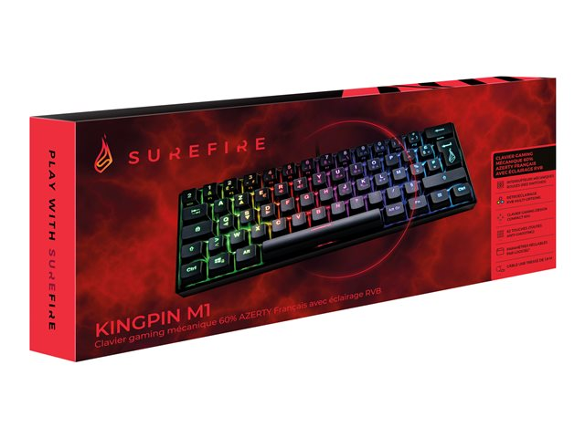 Le clavier KingPin M1 est idéal pour les configurations simples où l'espace de bureau est précieux. Parfait pour participer à des événements, des parties ou des tournois LAN. Le clavier gaming mécanique SureFire est rapide comme l'éclair et compact grâce à son format 60 %.