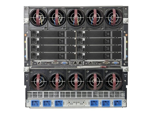Le boîtier BladeSystem c7000 fournit toutes les infrastructures d'E/S et les systèmes de refroidissement et d'alimentation nécessaires pour prendre en charge le serveur modulaire, l'interconnexion et les composants de stockage actuels et futurs. Le boîtier a une hauteur de 10 U et peut contenir jusqu'à 16 lames de serveur et/ou de stockage en plus de modules réseau et d'interconnexion de stockage redondants facultatifs. Il comprend un fond de panier NonStop hautes performances partagé de 7,1 Tb/s pour une connexion des lames de serveurs au réseau et au système de stockage partagé câblée en une seule fois. L'alimentation est assurée par un fond de panier à alimentation groupée. La flexibilité de l'alimentation est assurée grâce aux différentes méthodes d'entrée d'alimentation suivantes : entrée CA monophasée, entrée CA triphasée, entrée CC de 48 V et entrée CC à haute tension.