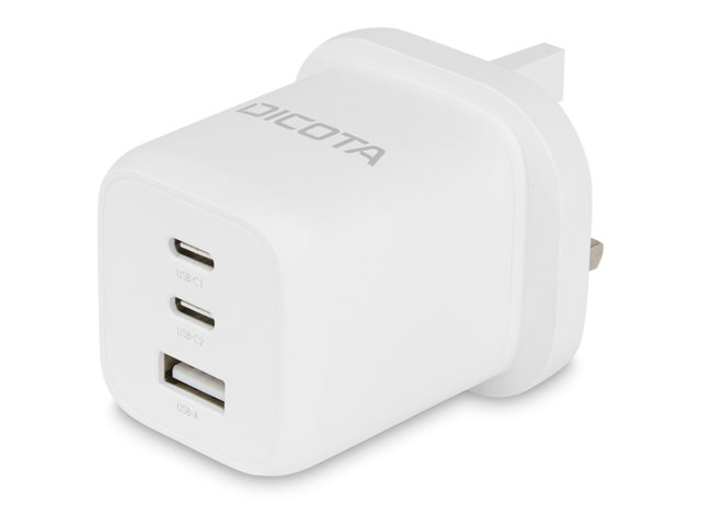 Description du produit DICOTA adaptateur secteur - compact, GaN - USB, 2 x USB-C - 65 Watt Type de Produit Adaptateur secteur Dimensions (LxPxH) 7.48 cm x 5.02 cm x 4.05 cm Poids 120 g Couleur Blanc Localisation Royaume-Uni Type de prise Total 3: USB, 2 x USB-C Tension requise CA 100-240 V (50/60 Hz) Tension fournie 4.5 / 5 / 9 / 15 / 12 / 20 V Courant électrique max. 5 A Technologie de charge rapide Power Delivery 3.0 Alimentation fournie 65 Watt Détails du dispositif d'alimentation 2 x - USB-C à 24 broches - 5 V - 3 A
