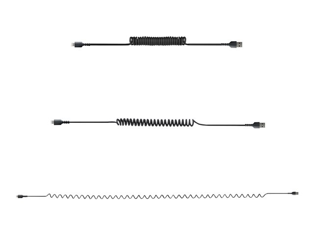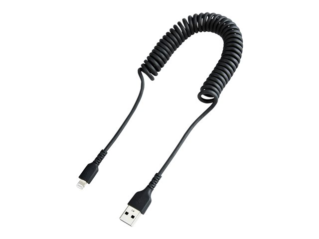 Certifié Mfi - Adaptateur USB Lightning Noir, Gaine en TPE - Cordon Chargeur Iphone/Lightning Spiralé en Fibre Aramide Très Résistant (RUSB2ALT1MBC) - Câble Lightning - USB mâle pour Lightning mâle - 1 m - noir - bobiné