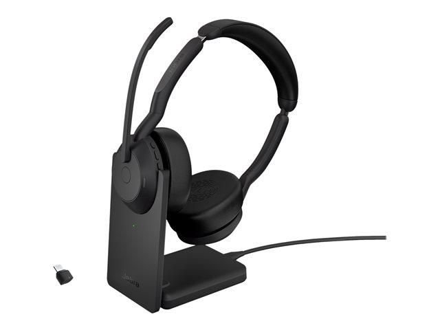 Micro-casque - sur-oreille - Bluetooth - sans fil - Suppresseur de bruit actif - USB-C - noir - avec support de chargement - certifié Zoom, Cisco Webex Certified, Optimisé pour Microsoft Teams, Certifié Alcatel-Lucent, Certifié Avaya, Certifié Unify, Certifié MFi, Certifié Amazon Chime