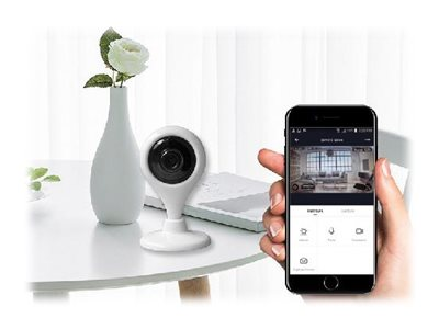 Surveillez votre intérieur de n'importe quel endroit dans le monde sur votre smartphone ou tablette grâce à la caméra Wi-Fi connectée DOM-CAM02.