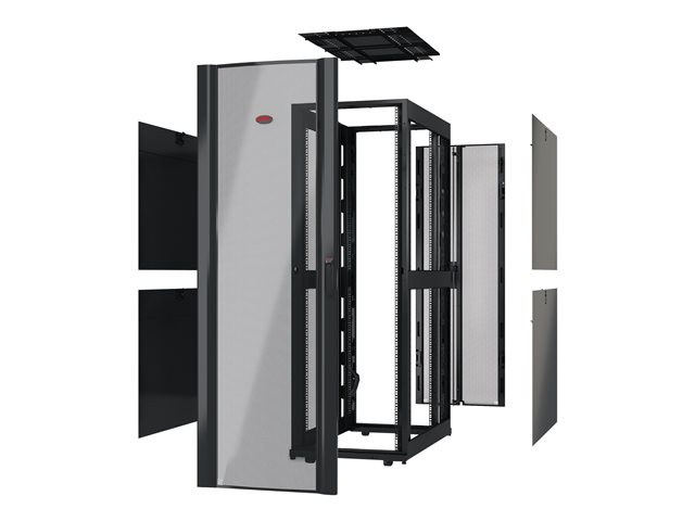 Armoires informatiques riches en fonctionnalités optimisées pour l'architecture en rangées InfraStruxure, la gestion des câbles, la distribution d'alimentation ainsi qu'une circulation d'air optimale.