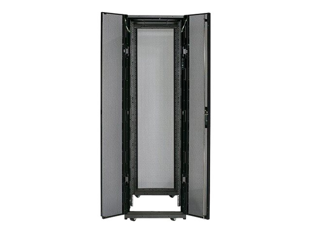 Armoires informatiques riches en fonctionnalités optimisées pour l'architecture en rangées InfraStruxure, la gestion des câbles, la distribution d'alimentation ainsi qu'une circulation d'air optimale.