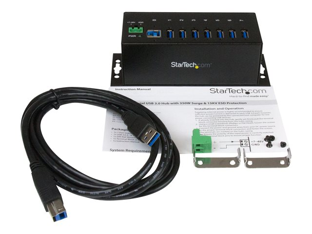 Concentrateur USB 3.0 avec protection contre ESD (DES) - Concentrateur (hub) - 7 x SuperSpeed USB 3.0 - Montage sur rail DIN, fixation murale - Tension CC - pour P/N: ITB20D3250, USB312SAT3CB, USB315CB2M, USBLT1MWS, USBLT2MBR, USBLTM1MBK, USBLTM1MWH