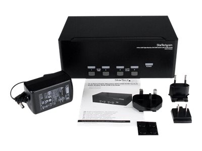 Le commutateur KVM USB DVI trois écrans à 4 ports SV431TDVIUA permet à 4 ordinateurs (comprenant chacun 3 sorties vidéo DVI) de partager des écrans, 1 microphone et 1 jeu de haut-parleurs, 1 clavier et 1 souris, ainsi qu'un périphérique USB 2.0 supplémentaire, comme un disque dur externe, une clé USB, une imprimante ou une webcam.