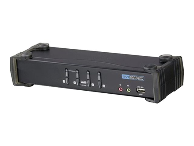 Description du produit Uniformatic - commutateur écran-clavier-souris/audio - 4 ports Type de périphérique Commutateur écran-clavier-souris/audio - 4 ports Sous-type KVM Ports 4 x KVM / audio Nombre d'utilisateurs KVM 1 utilisateur local Caractéristiques Concentrateur USB 2.0 intégré à 2 ports -
