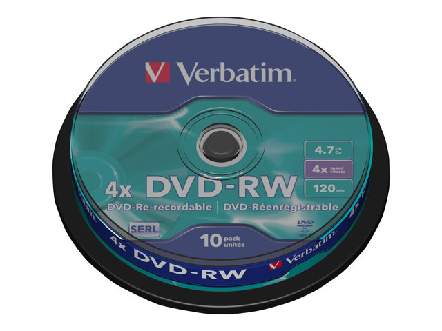 10 x DVD-RW - 4.7 Go 4x - argent mat - spindle