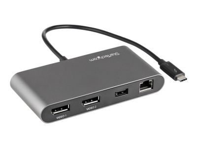 Cette station d'accueil Thunderbolt 3 certifiée est une mini station d'accueil compacte qui offre des connexions indispensables en termes de productivité. La station d'accueil alimentée par bus connecte deux écrans DisplayPort 4K, un port Gigabit Ethernet et un port USB-A (USB 3.2). Pour une configuration flexible, le câble Thunderbolt 3 rallongé inclus dispose d'une longueur de 28 cm.