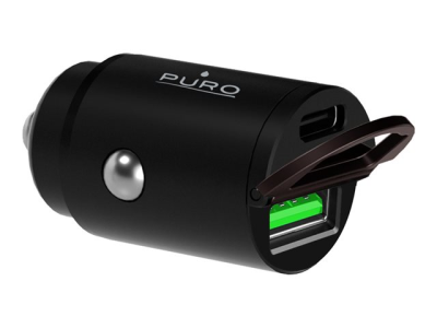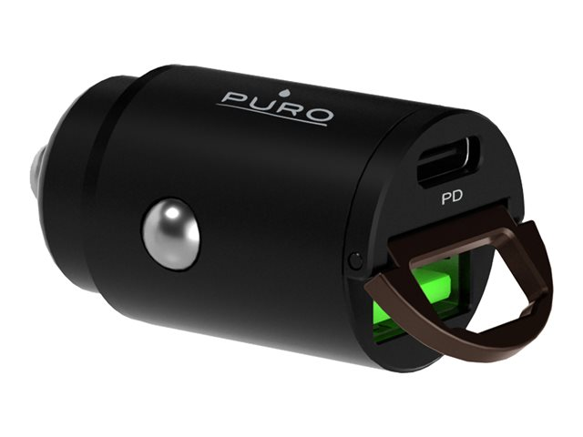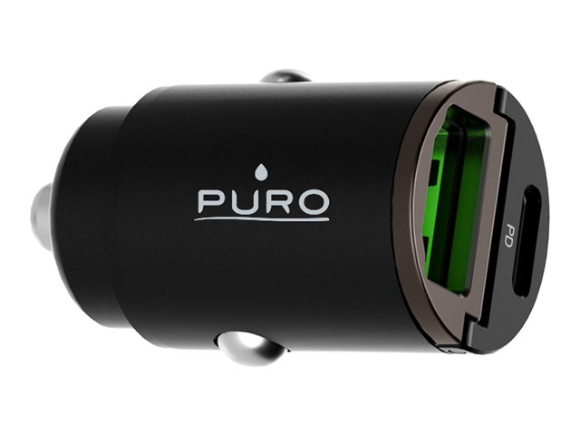 Puro - Adaptateur d'alimentation pour voiture - 30 Watt - 3 A - Fast Charge, PD - 2 connecteurs de sortie (USB, 24 pin USB-C) - noir PUROCAC30WUSBACBK
