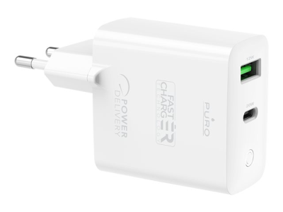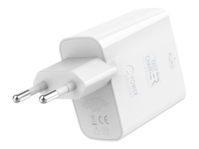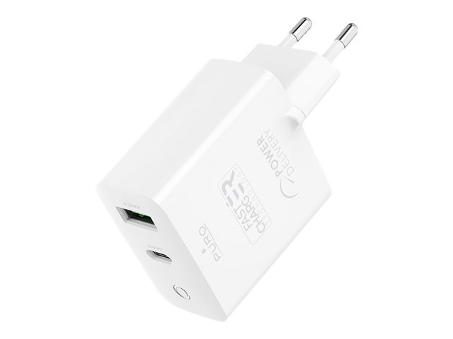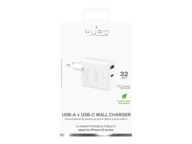 Puro - Adaptateur secteur - 32 Watt - 3 A - Fast Charge, PD - 2 connecteurs de sortie (USB, 24 pin USB-C) - blanc